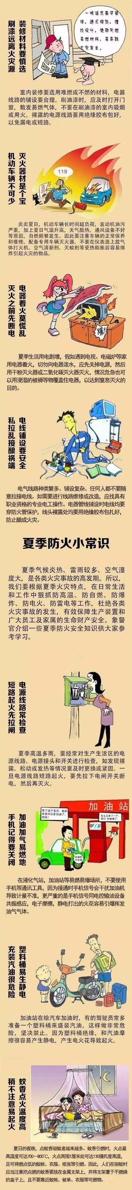 夏季高温炎热,多雷电天气,是各类火灾事故的高发期,我们要在日常工作和生活中狠抓防高温、防自燃、防爆炸、防电火、防雷电等工作,杜绝各类火灾事故的发生,有效保障群众的生命财产安全。今天介绍一些夏季防火安全知识供大家参考学习!