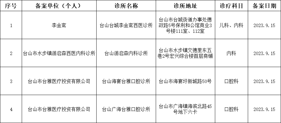 根据《诊所备案管理暂行办法》第十四条规定,现将近期在我局备案的诊所信息公开如下: