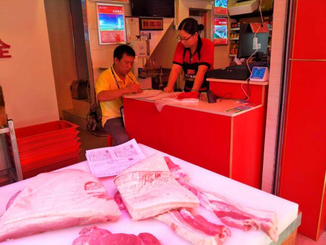 近日,四九所对四九镇、冲蒌镇农贸市场、超市猪肉档口、冷冻肉销售单位以及餐饮服务单位开展“非洲猪瘟”防控专项检查。