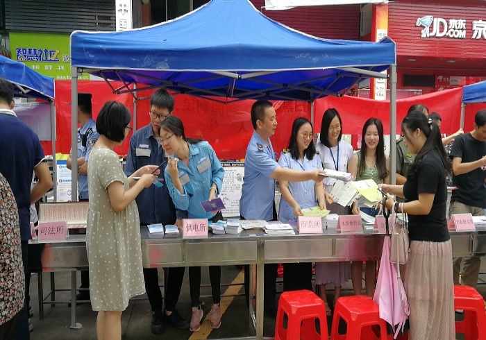 6月14日,大江市监所、水步食药监所会同市监局特设股,参加大江镇、水步镇2019年“安全生产月”现场宣传咨询活动。向企业和群众宣传特种设备监管、食品药品安全管理等知识,合力营造重视安全生产,共建平安台山的良好氛围。活动中,共派发安全生产知识宣传小册子100多本,电梯安全、食品安全、药品安全常识宣传单200多张。(图/文 大江市监所 唐少欢)