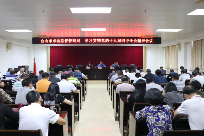 11月6日下午,市市场监管局召开党员干部大会,由党组书记、局长李伟仪专题传达学习党的十九届四中全会精神,并部署市场监管系统贯彻落实工作。