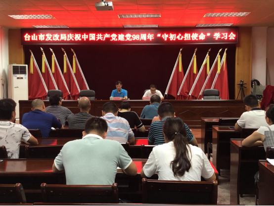 7月1日上午,台山市发展和改革局为庆祝中国共产党建党98周年,在局8楼会议室召开“守初心担使命 常怀强党之志”学习会。会议由党组成员、副局长毕超同志主持,全体党员干部参与会议。