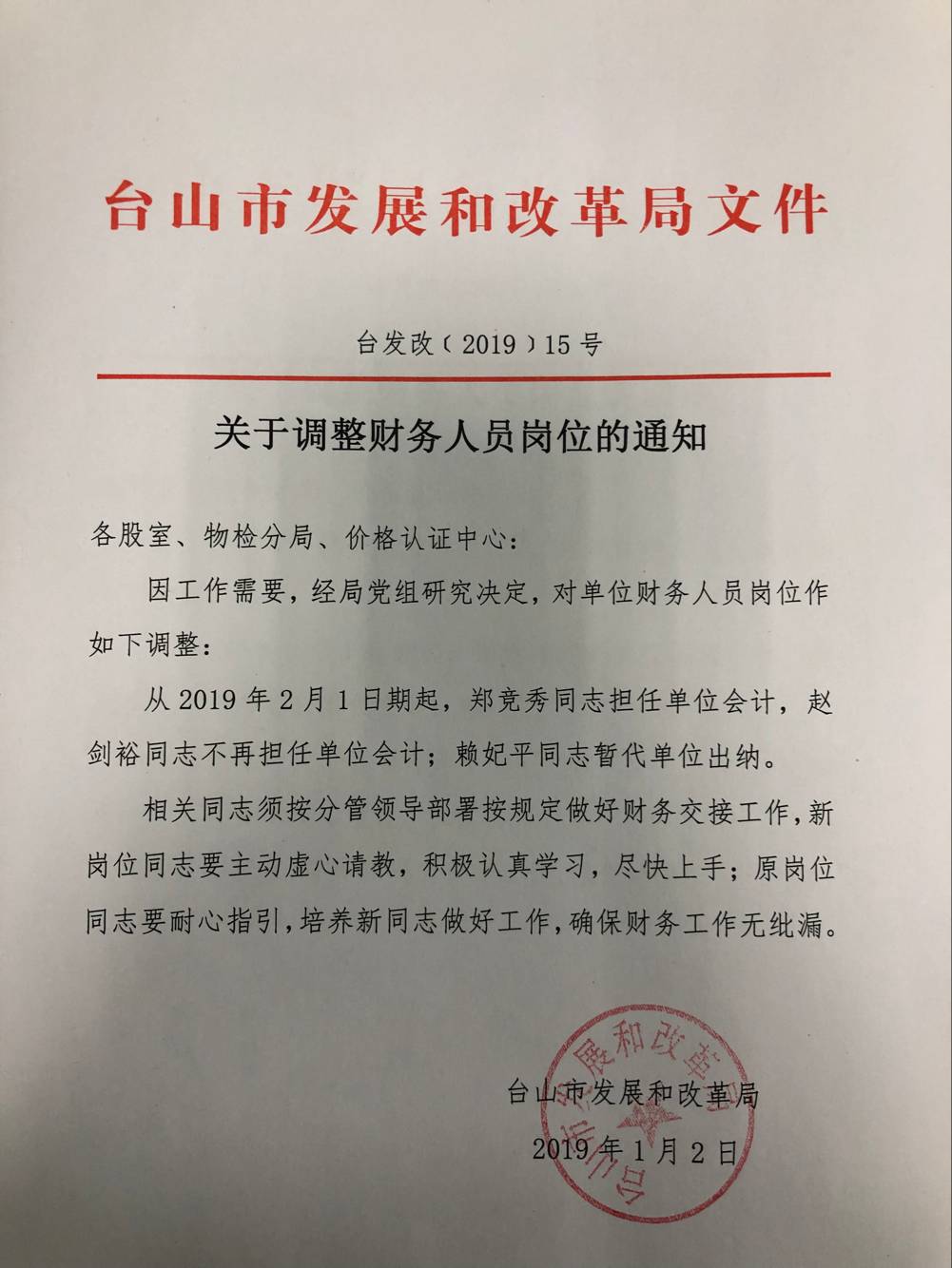 关于调整财务人员岗位的通知