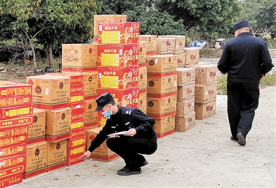 多部门联合行动,开展危爆物品安全检查,行动期间收缴非法存储烟花爆竹一批