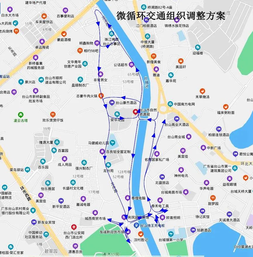 为进一步改善台城通济桥、五龙桥、西南路一带的交通环境,减少交通拥堵的发生,确保道路交通畅通有序,根据《道路交通安全法》和《台山市主城区道路交通改善规划方案》的要求,市公安局、市城市综合管理局从2021年6月15日起至18日,对通济桥、五龙桥、西南路、沿河西路、龙舟路一带的道路进行交通组织调整测试,现通告如下: