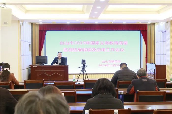 12月30日,台山召开2019年国家义务教育质量监测结果解读及应用工作会议,准确把握全市义务教育质量状况,市教育局副局长黄国盼、党组成员黄伟湛、机关各股室负责人,教师发展中心语文、艺术教研员等参加。