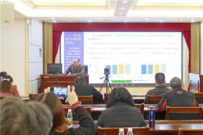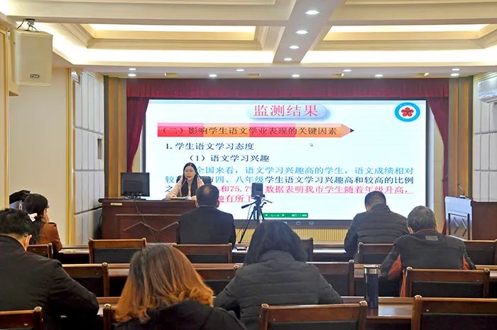 市教师发展中心教研员段丽华、教育局教育卫生保健所所长陈建伟分别就我市2019年语文、艺术学科学习质量监测结果报告进行详细解读,分析存在问题,提出意见建议。