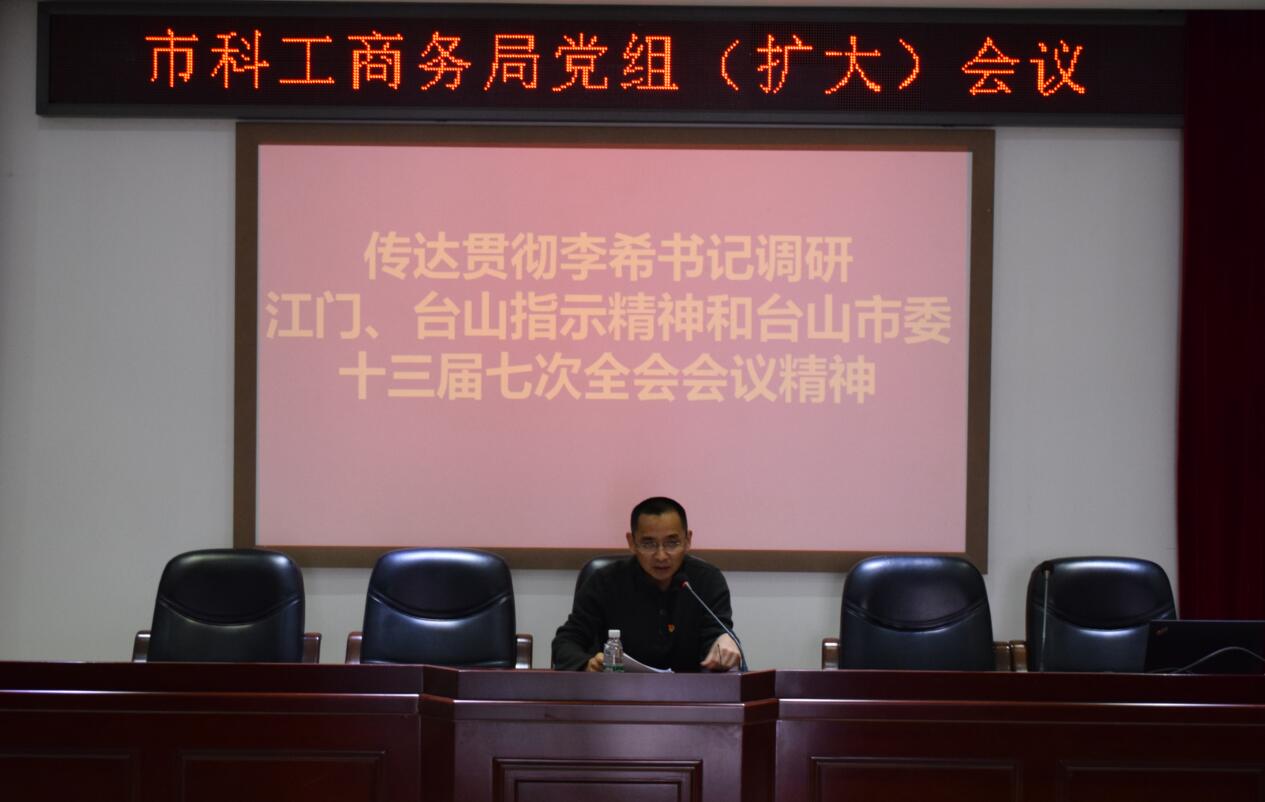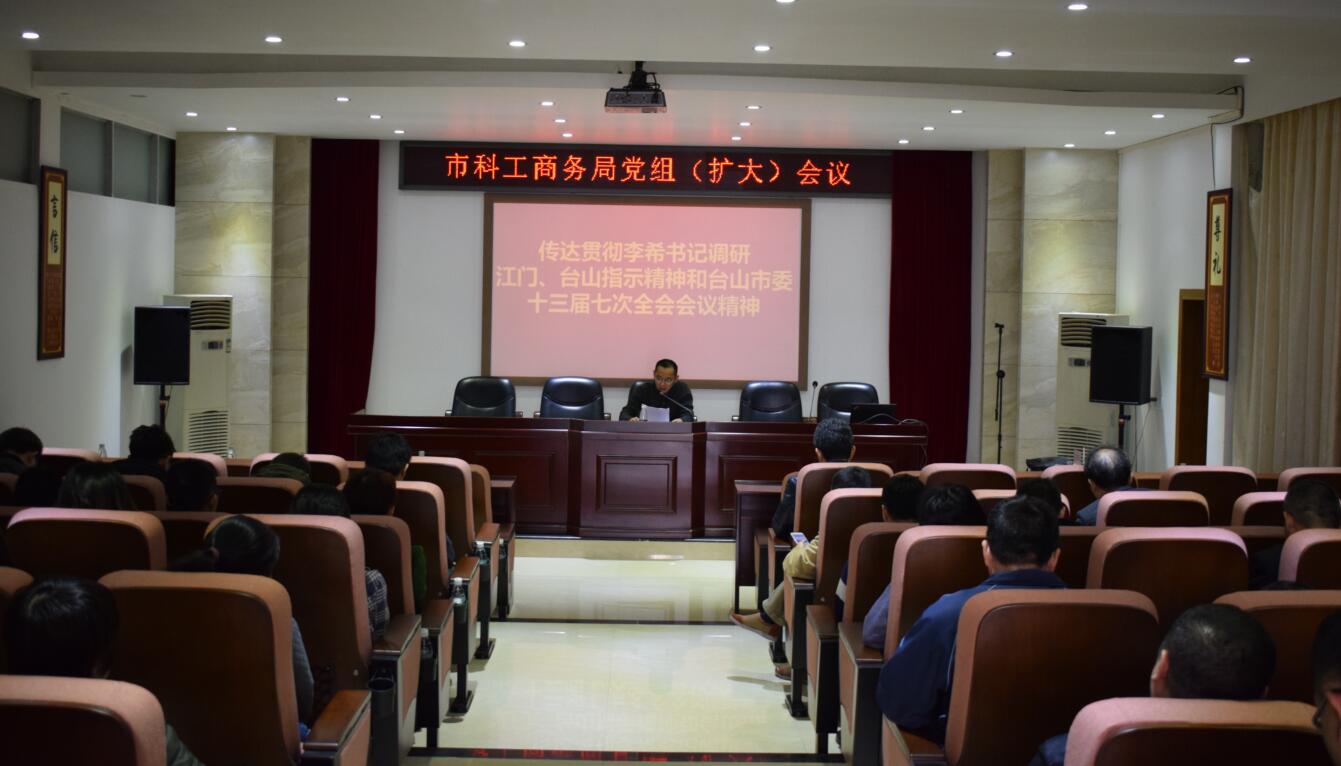 1月17日下午,台山市科工商务局党组书记、局长余睿敏主持召开党组(扩大)会议,专题传达学习省委书记李希调研江门、台山的指示精神和中共台山市委十三届七次全会会议精神,研究贯彻落实措施。局全体领导班子成员、各股室负责人和干部职工共80余人参加了会议。
