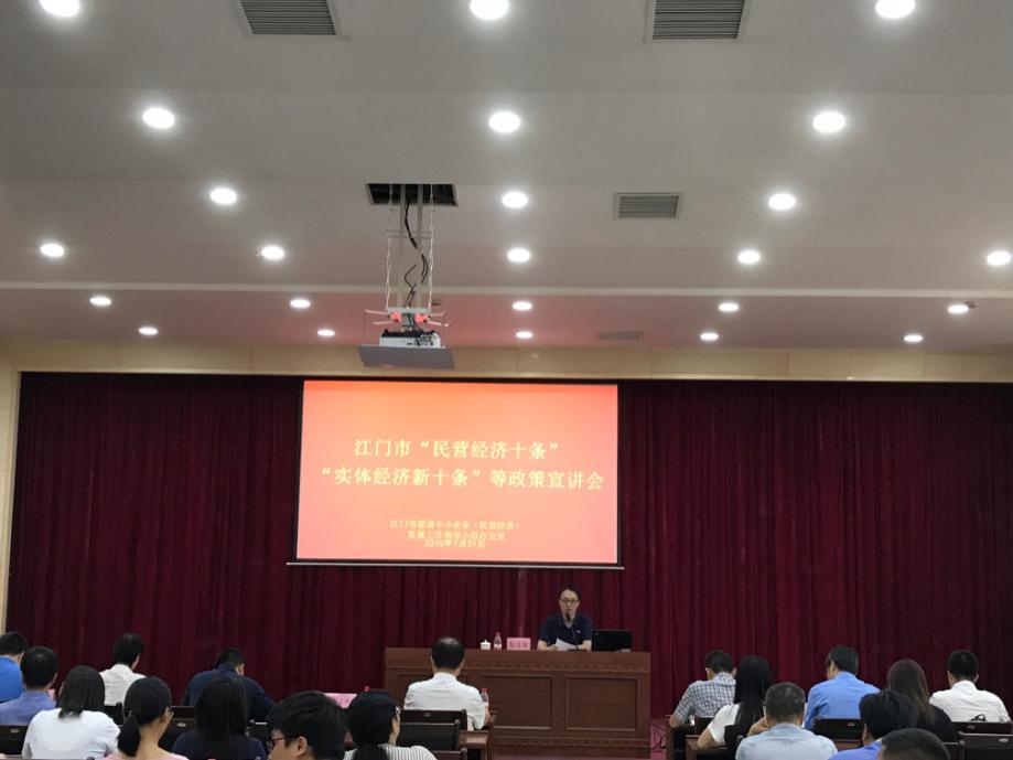 为进一步贯彻落实《江门市促进民营经济高质量发展实施方案》(“民营经济十条”)、《江门市降低制造业企业成本支持实体经济发展实施方案(修订)》(“实体经济新十条”),做好减税降费及其他配套措施的宣传解读工作,我局于7月31日在台山市工业新城举行新一轮民营经济政策宣讲会,向全社会尤其是制造业企业开展政策宣讲和解读,获得较大的反响。