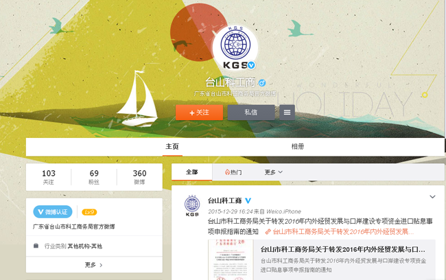 (四)台山市科工商务局官方微博、微信主动公开政府信息情况。