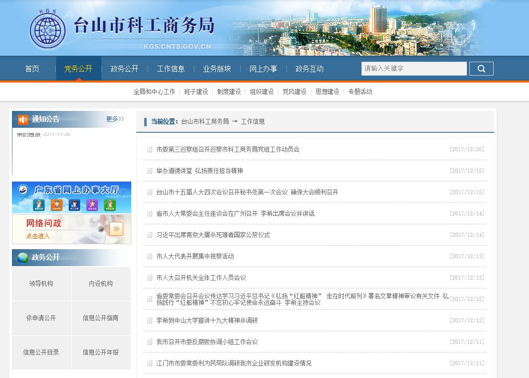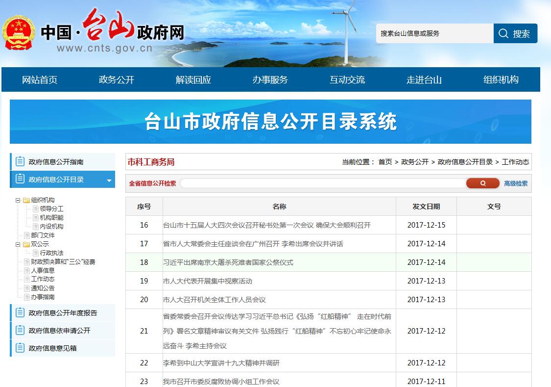 (一)台山市科工商务局网站主动公开政府信息情况。