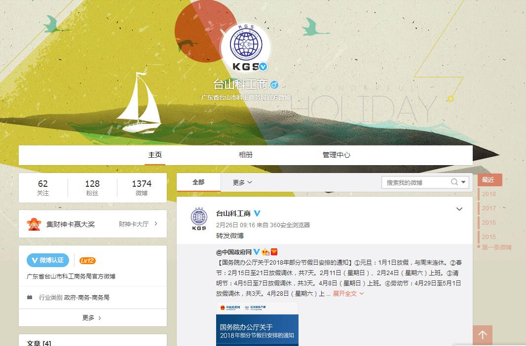 (四)台山市科工商务局官方微博、微信主动公开政府信息情况。