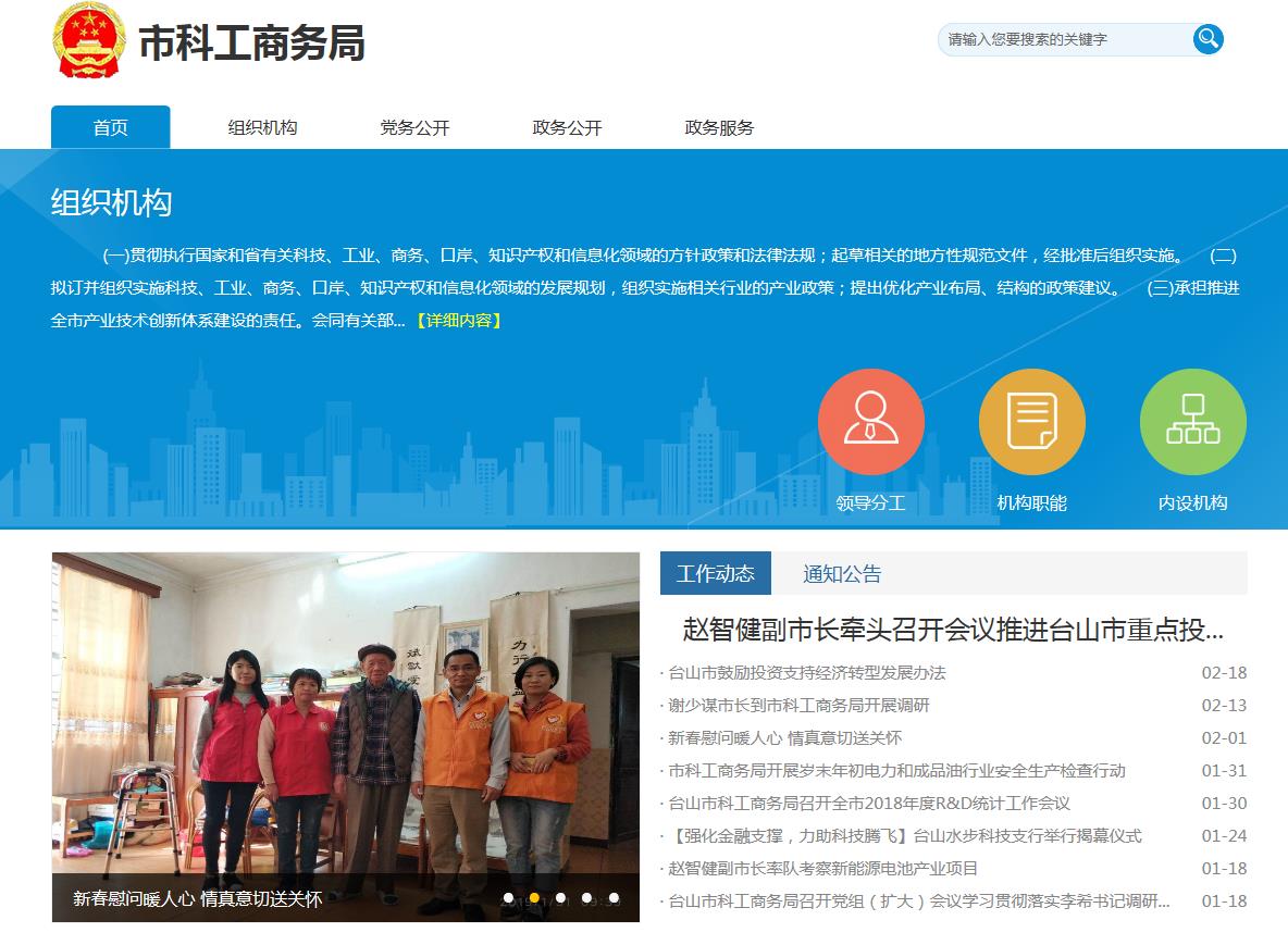 (三)强化载体建设。根据上级关于政府网站集约化的部署和要求,原台山市科工商务局门户网站于2017年12月成功迁移至市政府门户网站进行集约化管理,原网站停止使用。同时,局网站和信息公开平台进行目录调整,优化版块栏目建设,提高群众网上浏览体验,以更好地做好科工商务领域信息公开工作。