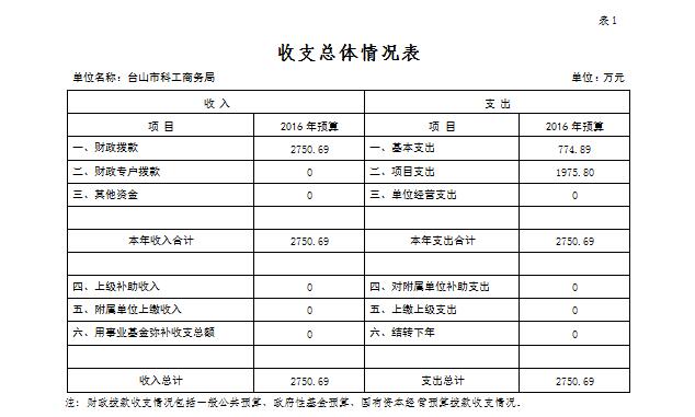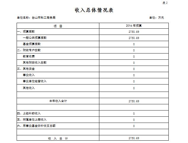 2016年本部门收入预算2750.69万元,比上年增加了49.47万元,增长1.83%,主要原因是科学技术类收入增加;支出预算2750.69万元,比上年增加了49.47万元,增长1.83%,主要原因是科学技术类支出增加。
