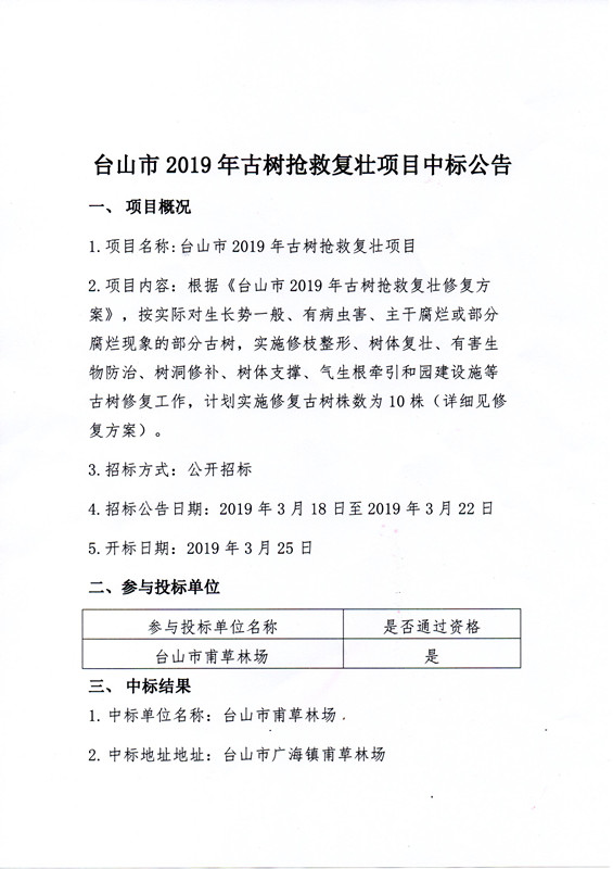 【公告】台山市2019年古树抢救复壮项目中标公告