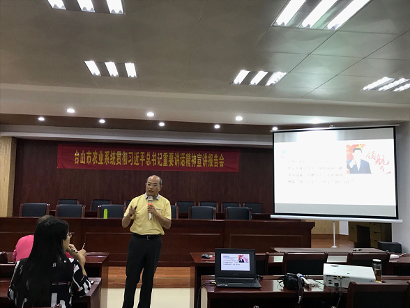 报告会上,局纪检组长蔡凤娇同志组织参会人员集中学习了江门市委林应武书记在江门市领导干部深入学习贯彻习近平总书记重要讲话精神专题研讨班上的辅导报告精神。强调,农业系统全体党员干部要把学习宣传贯彻习近平总书记重要讲话精神作为当前和今后一个时期的首要政治任务,深刻领会习近平总书记重要讲话精神的丰富内涵和精神实质,以习近平新时代中国特色社会主义思想武装头脑、指导实践,努力推动全市“三农”工作上新台阶。