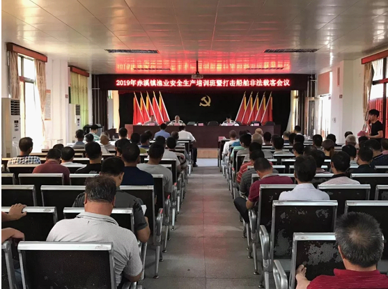 为切实加强伏季休渔期间渔业安全监督管理工作,4月24日上午,台山渔政大队联合台山海事处、赤溪镇政府和赤溪派出所在赤溪镇召开渔业安全生产培训班暨打击船舶非法载客会和2019年南海伏季休渔宣传会。赤溪镇各沿海村委会主任、船东代表和渔民共150余人参加会议。