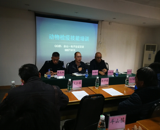 市畜牧兽医局刘耀彬同志作开班致词。他提出,加强畜禽养殖场的有效监管,严格落实动物及动物产品检疫的规程,是控制动物疫情传播的有力措施,各镇(街)要加强学习严格执行相关的检疫要求,为台山市畜禽产品的安全供应保驾护航。