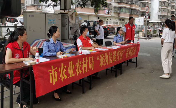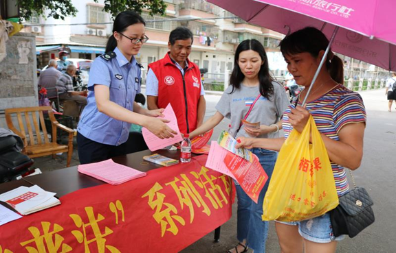 二是线上和线下相结合,强化宣传效应。坚持线上线下融合宣传,依托我局官方网站,在“谁执法谁普法”法治宣传专栏,转载了司法部《民法典》50问、《民法典》解读学习内容。结合自身职能开展民法“六进”。7月9日下午,我局党组书记、局长郑品辉带头,组织普法宣传队和志愿者深入台城街道办富城社区,通过设置宣传点、派发宣传单、走访群众和商铺等方式,发放《民法典》宣传资料,积极向群众宣传《民法典》的重要意义、立法目的、主要内容和鲜明特色,引导群众养成自觉守法的意识,形成遇事找法的习惯,培养解决问题靠法的意识和能力。