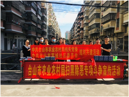 为进一步加强社区稳定,维护群众生活安宁,助力台山创建文明城市,11月13日上午,中共台山市农业农村局机关党委联合中共台山市富城社区委员会于明珠苑市场门口举办扫黑除恶专项斗争宣传活动。