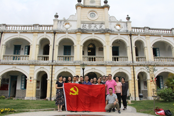 全体党员参观了位于筋坑管区南安村的光大学校旧址,在筋坑村委会书记带领下全体党员深入了解了光大学校的建校史,在参观过程中党员们了解到爱国华侨叶崇濂曾请孙中山亲笔题写“光大”二字,光大学校因孙中山的题字声名鹊起,抗日战争时期并为台山联合中学,培养了许多地下党员,曾作为粤中军事会议的据点,珠江纵队、滨海纵队、三罗总队许多干部都从光大学校走出去。全体党员还学习了革命理论先驱“红色教授”——何干之的伟大事迹,何干之出生于台山筋坑塘口村,是中国共产党著名理论家、历史学家、教育家和党史学家,是新中国高校中共党史学科的奠基人。此外还了解了从民国时期到新中国台山女子教育的历史背景,学习了旧时期台山女子为女权而艰苦卓绝、气壮山河的奋斗历史。