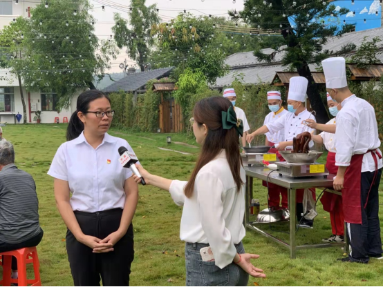 市人社局党组成员、副局长肖雄英在活动现场接受了央视记者的采访。肖雄英介绍了近年来台山市开展“粤菜师傅”工程的工作措施及成效。一方面,组织大规模“粤菜师傅”技能人才培训,近三年来已培训“粤菜师傅”学员5000余人;组织粤菜名师和专家,围绕台山本地特产如青蟹、生蚝、鳗鱼、大米四大国家地理标志产品等特色食材,对台山菜品进行改良创新。另一方面,坚持以“粤菜师傅”工程为纽带,先后在桂水村等美丽乡村示范点开展送教下乡活动,让村民在家门口就可以学厨艺。另外,市人社局还注重把“粤菜师傅”工程与中华民族传统文化融合,比如在传统佳节组织厨艺学校老师下到基层镇村,现场教授村民制作传统应节点心和应节菜式。