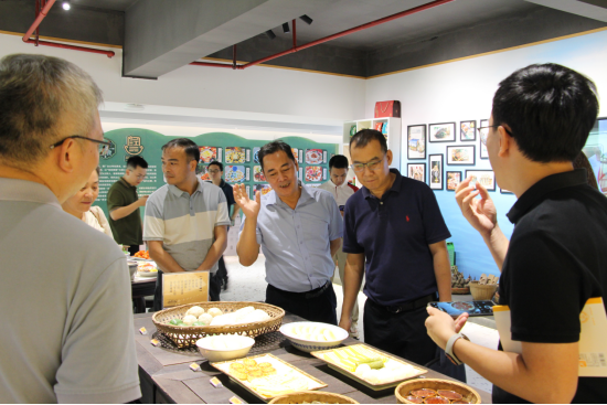 在广东厨艺技工学校,调研团队与在场的厨艺培训班师生对话交流,品鉴学生厨艺,参观“粤菜师傅”展馆,并了解台山技校新校区的整体规划、学科设置及招生情况。