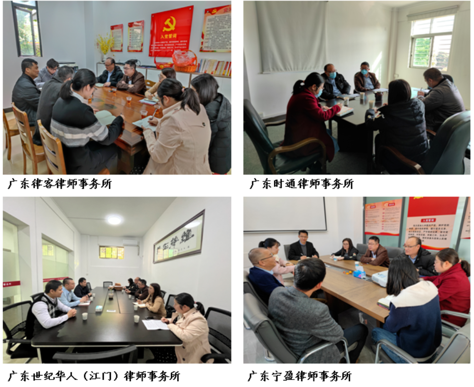 走访中,调研组详细了解各律师事务所内部管理、业务开展、职业道德、诚信执业和队伍建设等情况,听取各律所负责人的年度工作计划。同时,调研组就各律师所去年工作存在的共性问题如案件报备、律所报表报送、参与公益法律服务以及一村(社区)一法律顾问工作等情况提出整改要求。调研组强调,各律所要创新宣传方式,线上线下协同发力举办学习贯彻党的二十大精神等专题教育培训班,切实提升广大律师的政治觉悟和理论水平,鼓励律师申请入党,壮大我市党员律师队伍。
