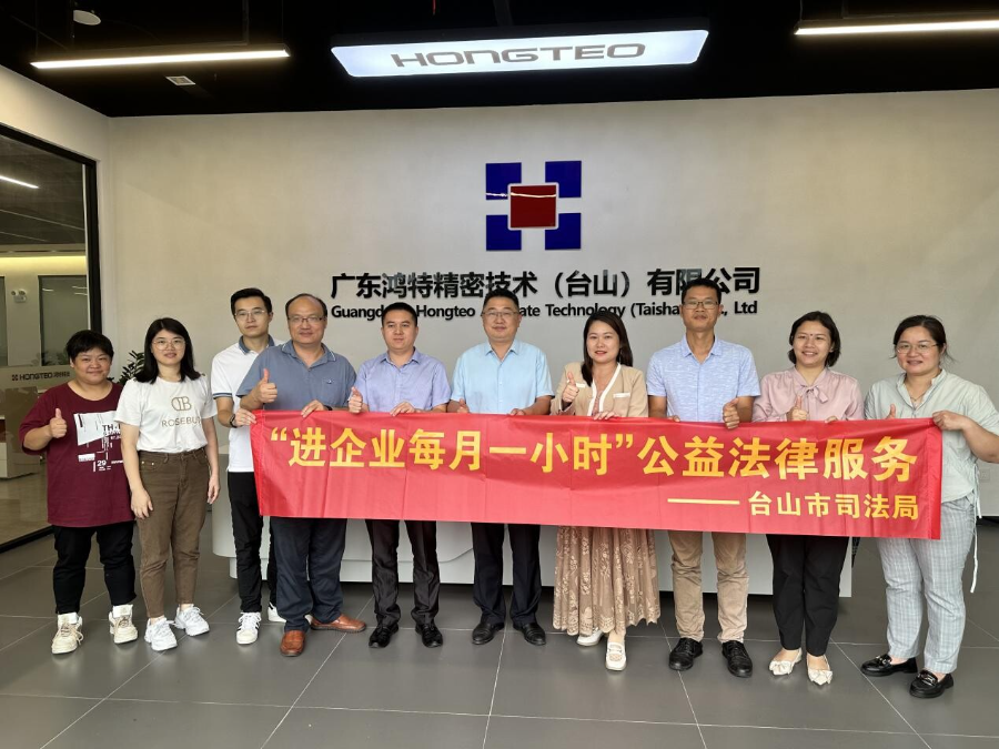 为进一步完善行政执法监督工作机制,拓展行政执法监督公众参与途径,近日,我局联合市委政法委到广东鸿特精密技术(台山)有限公司(下面简称鸿特公司)开展行政执法监督联系点调研工作。
