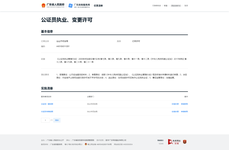 台山市司法局2024年行政许可事项清单进行了调整,删除三项,现有两项行政许可事项: