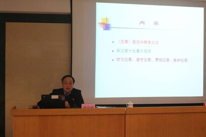 林伟雄同志以“新时代  新思想  新判断  新要求—学习《中国共产党章程》(修正案)”为题,深入阐述了党章的作用和地位、中国共产党成立以来对党章的修改历程,重点解读了新党章重大修改内容、亮点和特点,指明了把党的十九大报告确立的重大理论观点和重大战略思想写入党章的重大意义,要求全体党员学习党章,遵守党章,贯彻党章,维护党章,并发挥好党员先锋模范带头作用和战斗堡垒作用,切实做到忠诚于党,忠诚于审计事业,依法履职。
