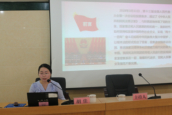 胡佳同志围绕宪法的基本理论、现行宪法的背景和历史、现行宪法的结构、宪法修正案的主要修改内容和推进宪法全面贯彻实施五大方面进行详细解读,深入精辟地阐述了宪法的发展历程、修正目的和意义。以及修改的主要内容等,与会人员受到了一次深刻的法制宣传教育,进一步深刻认识和领会了宪法修正案的精神实质,为我们今后学习宣传贯彻宪法具有很强的指导性和启发性。市审计局党组书记、局长朱积珠同志要求:全体审计人员要以本次学习为契机,切实做到自觉维护宪法、践行宪法,立足本职,依法审计,为推进依法治国发挥积极作用。