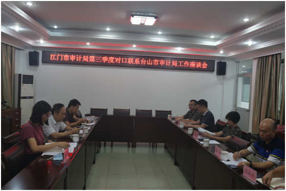 9月22日,江门市审计局二级调研员林伟雄同志带领法规科和社保科同志到台山市审计局开展第三季度对口联系调研工作。审计局全体班子成员及有关股室同志参加了座谈会。