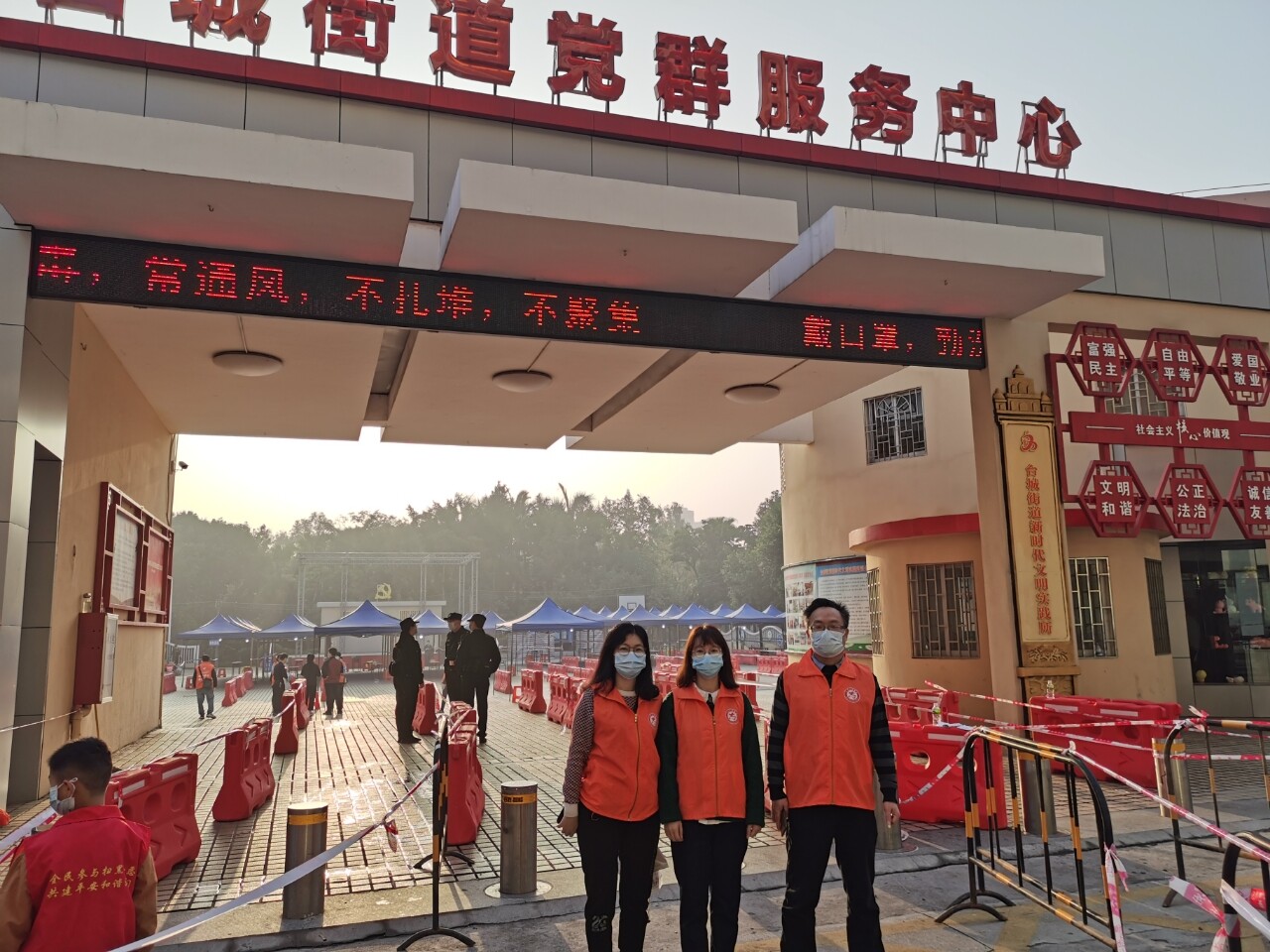 在检测一线,党员志愿者听从指挥分赴各个岗位,协助社区和医护人员维持排队秩序,指导群众使用微信“扫一扫”粤核酸的葵花码,录入核酸检测预约资料等准备工作。对于没有智能手机的老人家,党员志愿者在现场用自己的手机帮老人家形成核酸检测葵花码并打印,引导老人走绿色通道快速完成核酸采样。1月15日核酸检测工作一直持续到晚上12时,当晚天气寒冷,党员志愿者至始坚守岗位,争分夺秒,一刻不停协助做好有关工作,为核酸检测顺利有序高效进行提供了坚实支撑。