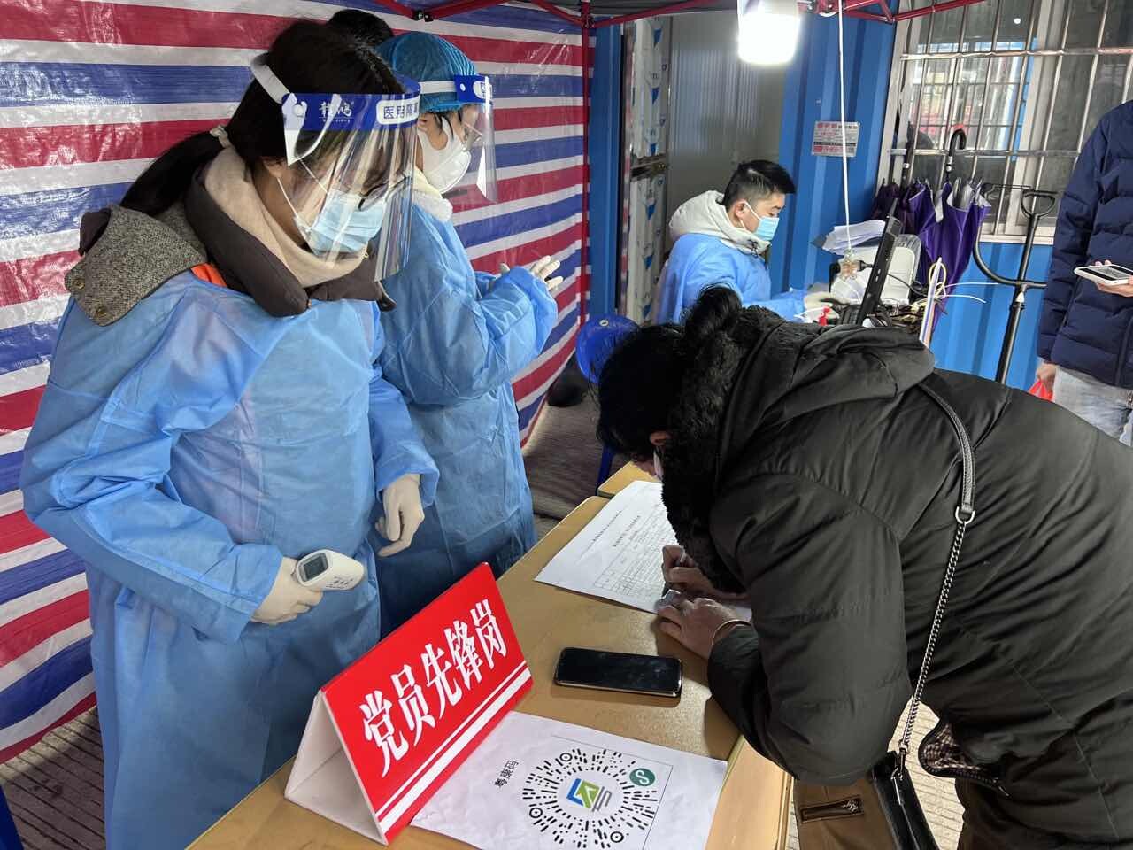 在商业城疫苗接种集中点,统计党员志愿者认真维持现场秩序,提醒群众佩戴好口罩,保持一米安全距离,并帮助60岁以上老人使用智能手机出示健康码。统计党员志愿者一遍遍地重复引导,一次次地耐心询问、解释,让每一位前来接种的群众都能尽快接种疫苗,确保疫苗接种全程规范、有序、安全、高效。