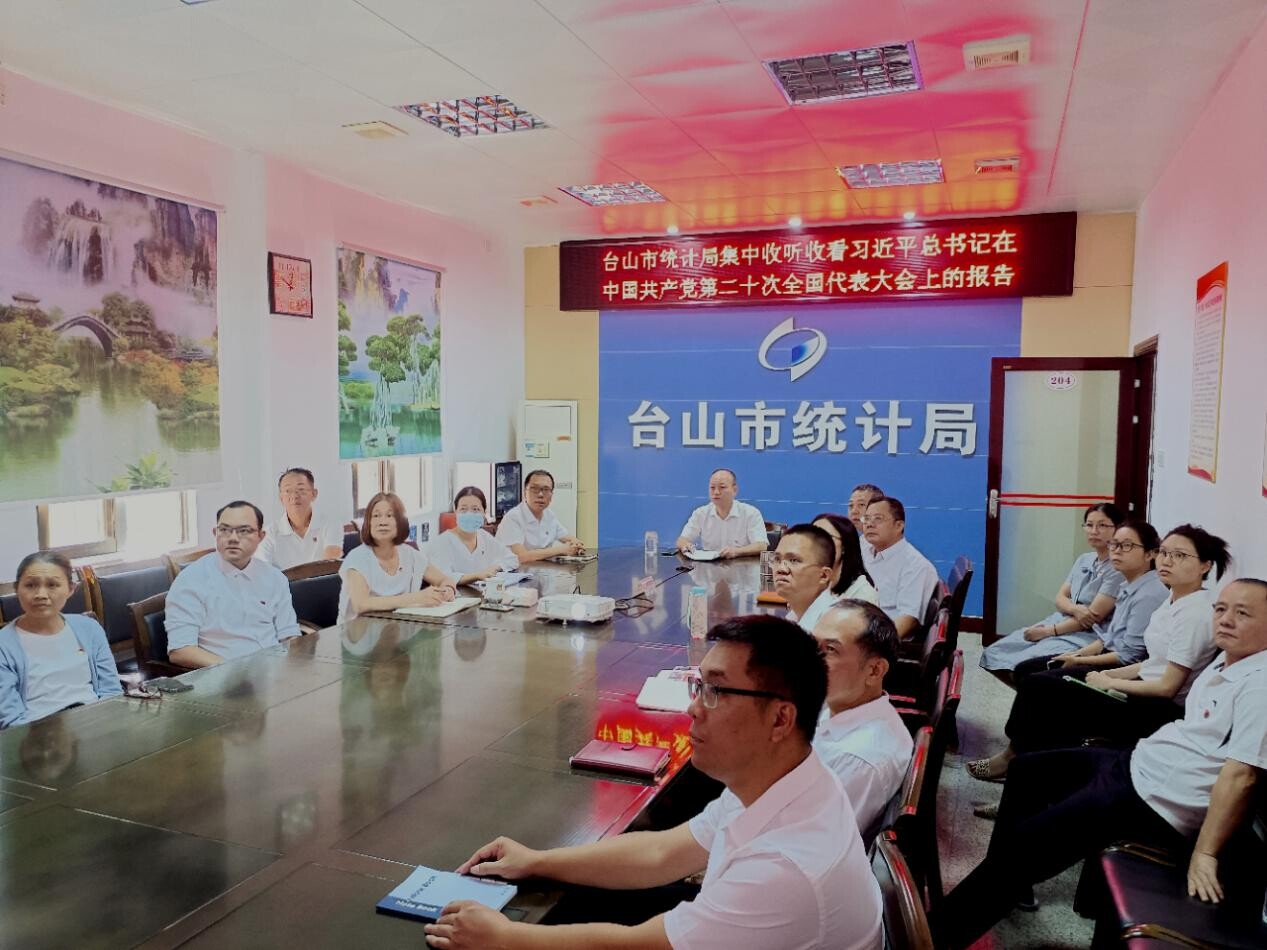 10月16日上午10时,中国共产党第二十次全国代表大会隆重开幕。台山市统计局组织全局党员干部在局二楼会议室集中收看了党的二十大开幕会直播,认真聆听、学习习近平总书记在大会上的报告。
