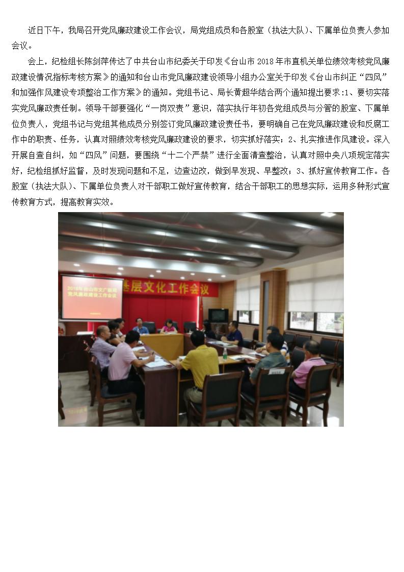 台山市文化广电新闻出版局召开党风廉政建设工作会议