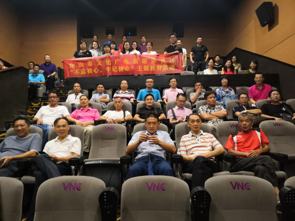 10月8日晚,为贯彻落实“不忘初心、牢记使命”主题教育,台山市文化广电旅游体育局组织全体党员集中前往台山影院观看献礼新中国成立70周年影片《我和我的祖国》。通过观看影片,表达对祖国母亲的热爱、祝福与深深的敬意。市文化广电旅游体育局党组书记雷克同志带队,市文化广电旅游体育局(含下属事业单位)全体在职党员一同观看。