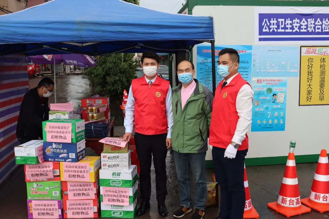 2月12日开始,台山市旅游协会和台山市执着慈善会的部分工作人员前往冲蒌、台城、大江、公益大桥、斗山、都斛、广海等多个交通防控站点,慰问坚守在防疫一线的工作人员,把一份份爱心捐赠送到疫情防控一线,为早日打赢本次防控阻击战做出他们微薄的贡献。
