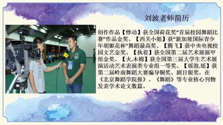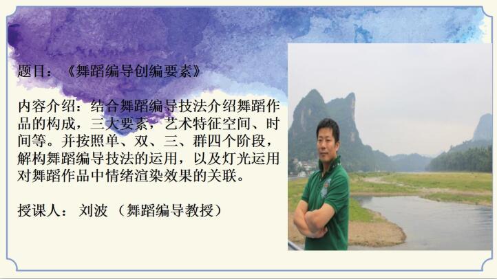 五、讲座内容:结合舞蹈编导技法介绍舞蹈作品的构成,三大要素,艺术特征空间、时间等。并按照单、双、三、群四个阶段,解构舞蹈编导技法的运用,以及灯光运用对舞蹈作品中情绪渲染效果的关联。