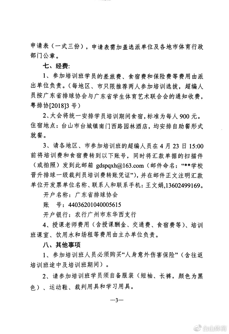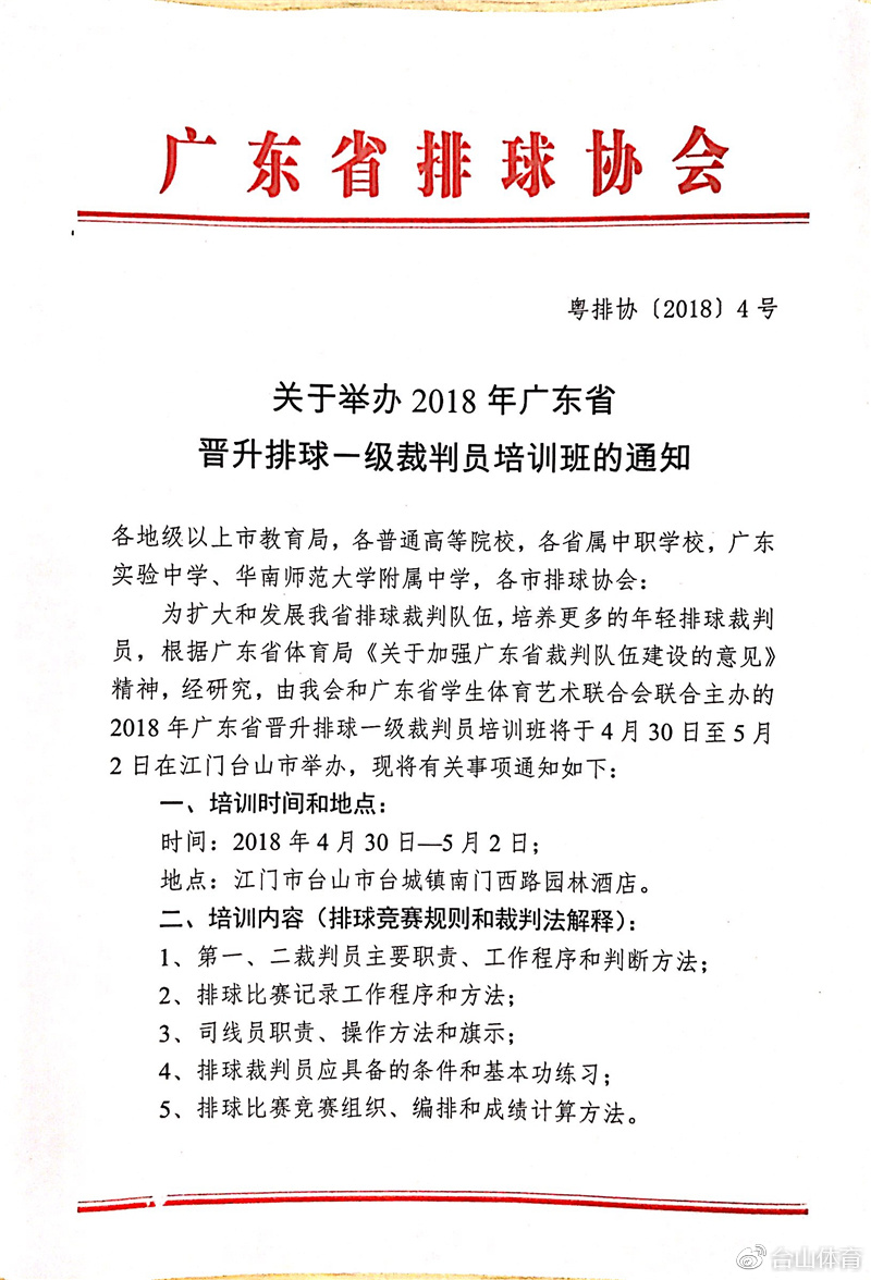 关于举办2018年广东省晋升排球一级裁判员培训班的通知