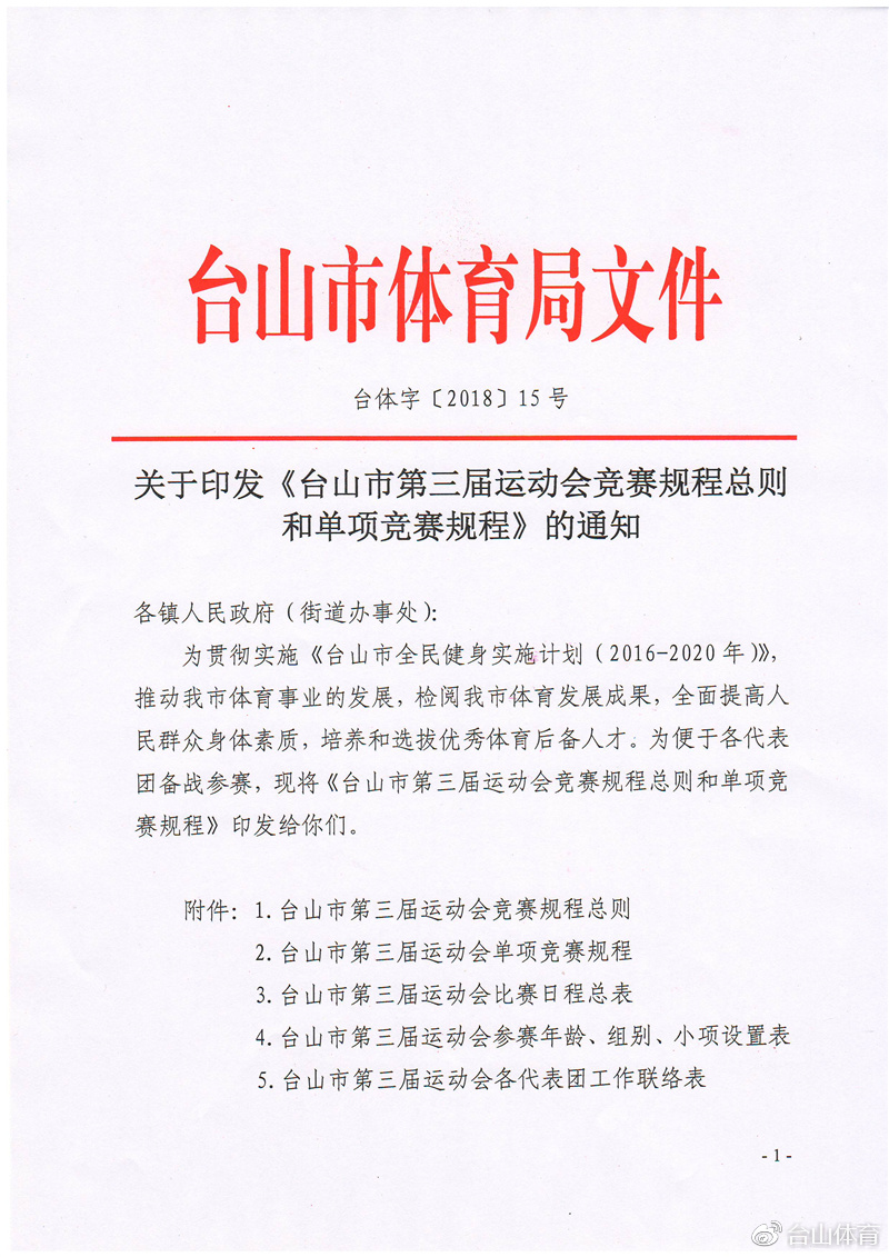 附件:2018015-关于印发《台山市第三届运动会竞赛规程总则和单项规程》的通知