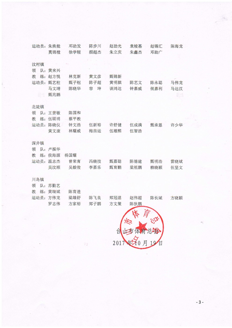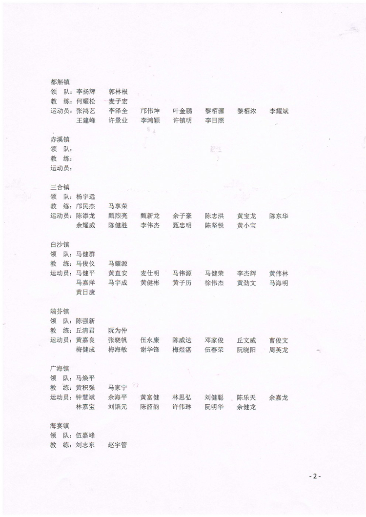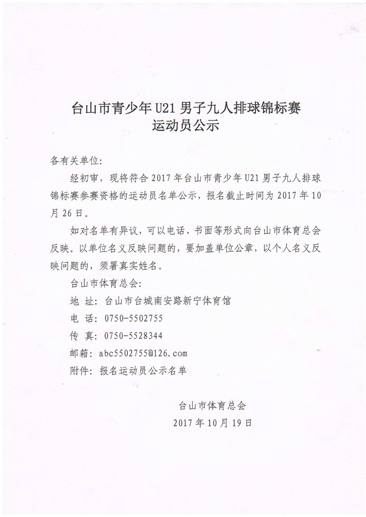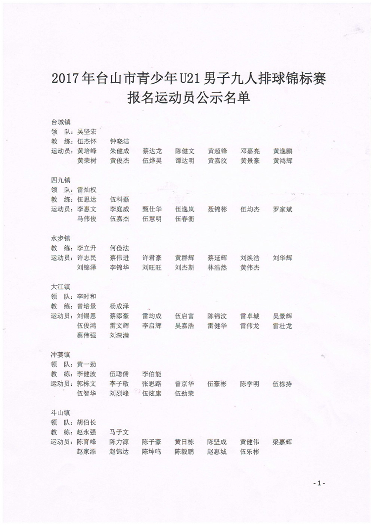 台山市青少年U21男子九人排球锦标赛运动员公示