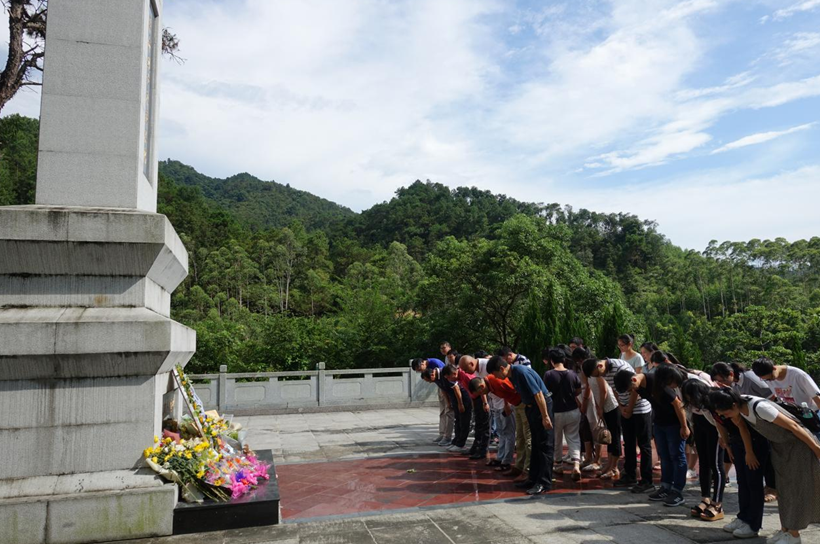 图为全体党员干部鹤山市龙潭山革命烈士纪念碑前鞠躬悼念缅怀先烈