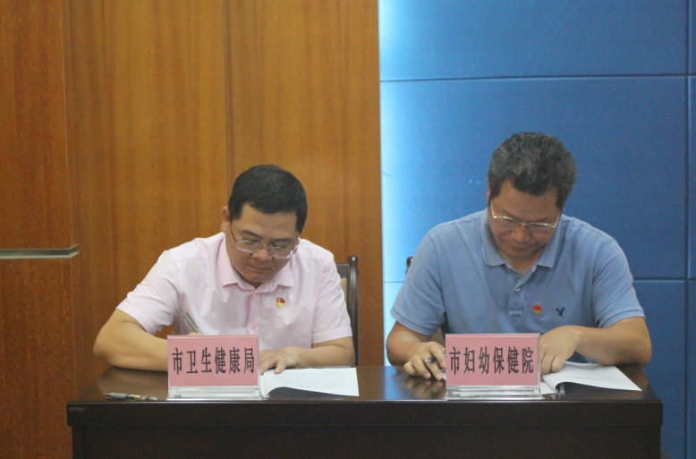 图为伍虹灯同志代表局党组与市人民医院签订党风廉政建设责任书