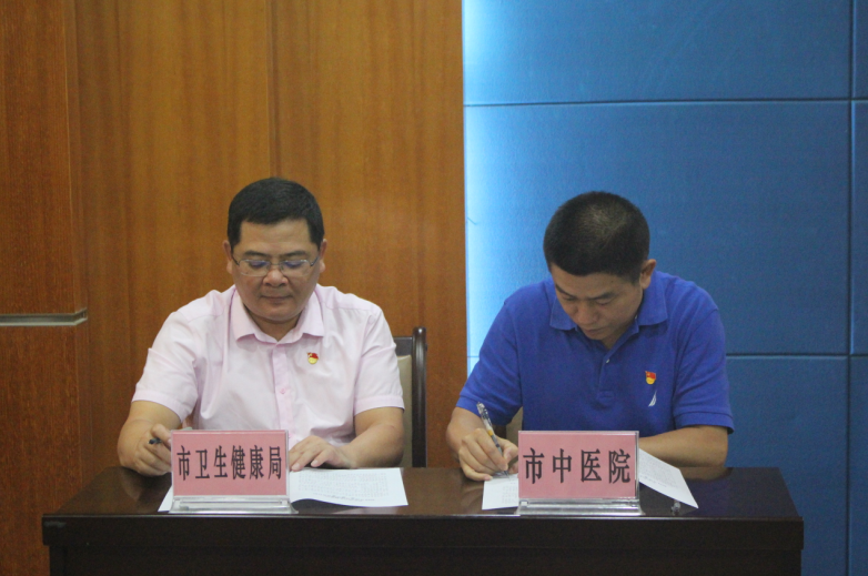 图为伍虹灯同志代表局党组与市中医院签订党风廉政建设责任书