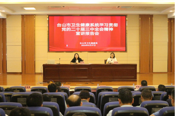 9月27日,市卫生健康局举办学习贯彻党的二十届三中全会精神宣讲报告会,局党组书记、局长魏清莲作宣讲报告。局机关全体干部、各医疗卫生单位党政主要领导参加会议。