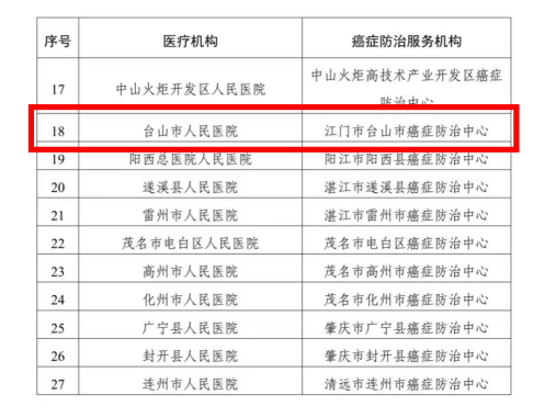 近日,广东省卫生健康委员会发布《广东省卫生健康委办公室关于确定第三批县区级癌症防治中心的通知》,台山市人民医院获批“江门市台山市癌症防治中心”。这不仅是对医院肿瘤防治专业实力的认可,也标志着医院在癌症防治领域迈上了新台阶。