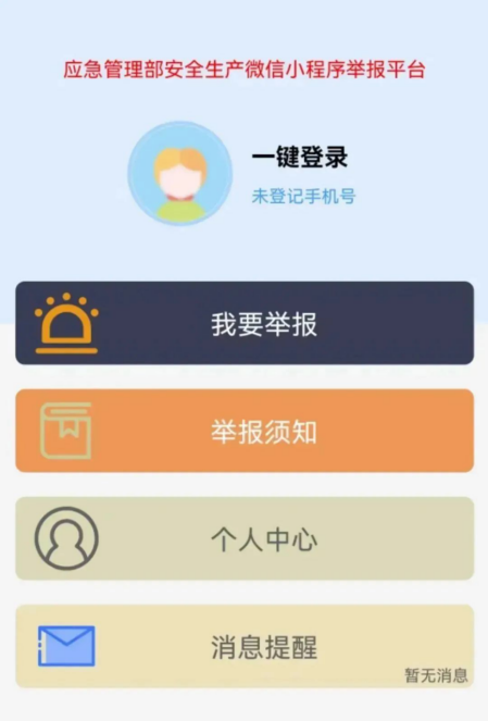 或关注“应急管理部”微信公众号,通过底部菜单栏【服务】选择【安全生产举报】,进入举报平台。