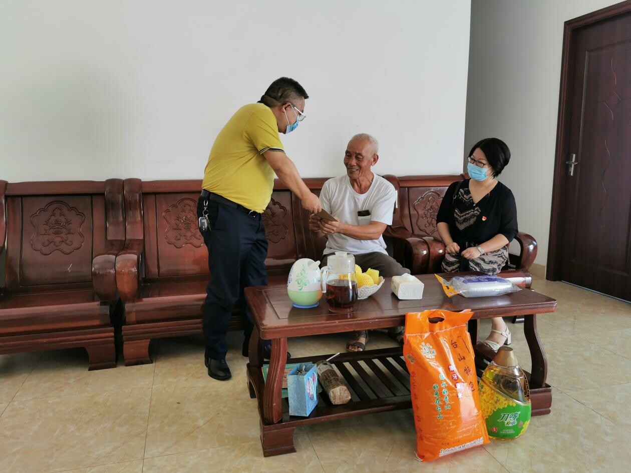 在走访慰问中,刘文同志与甄光荣同志亲切交谈,详细询问他的身体状况和家庭生活状况,了解他的困难和需要,刘文同志鼓励他要相信党,所以要坚定信心、保重身体,鼓起生活的勇气坚强面对困难,并对在场的随行人员说“老党员们为台山发展作出了积极贡献,我们要全力关心、照顾困难党员的生活,积极帮助他们排忧解难。”同时叮嘱大家在疫情期间要注意个人防护,勤洗手、出门戴口罩等防疫知识,有困难找组织,组织一定会尽力帮助,最后送上了食用油、大米和慰问金,让这位老党员感受到了住建大家庭的亲切关怀。